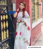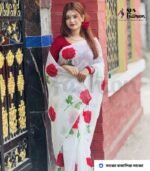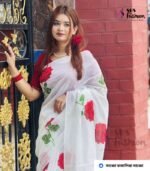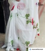 Soft Half Silk Skin Print Premium Quality Saree White