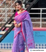 Semi Cotton শাড়ি with Block and Embroidery work with Blouse